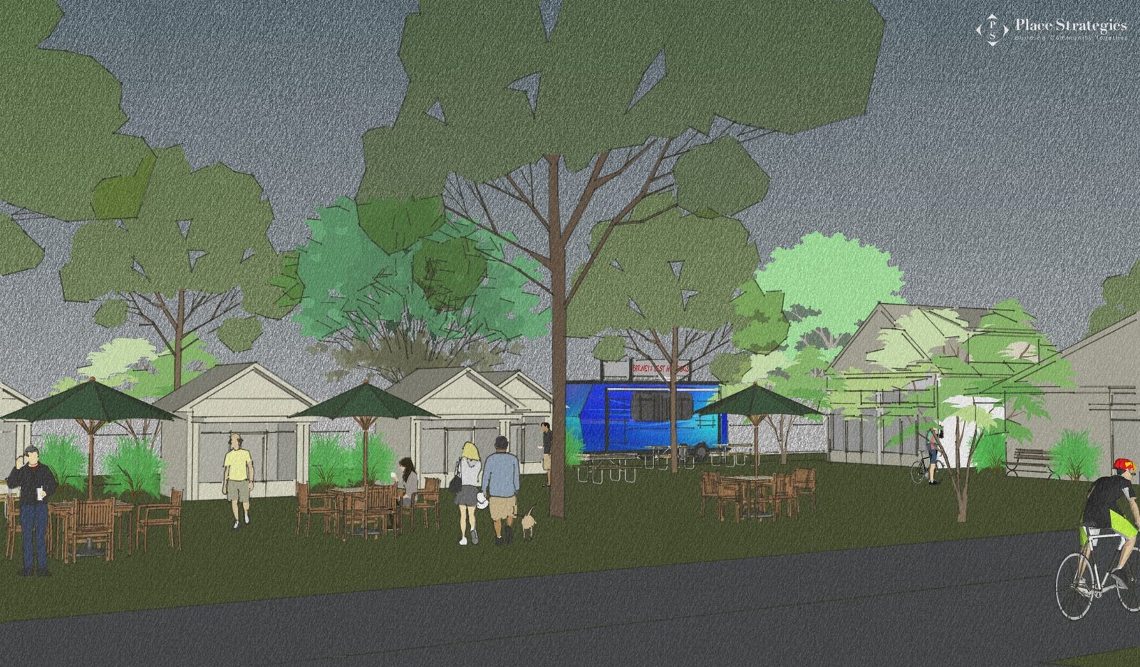 The Pioneer Grove Market is intended to bring vibrancy to the community as an amenity to residents but as well as a trendy area to visit in Balch Springs.